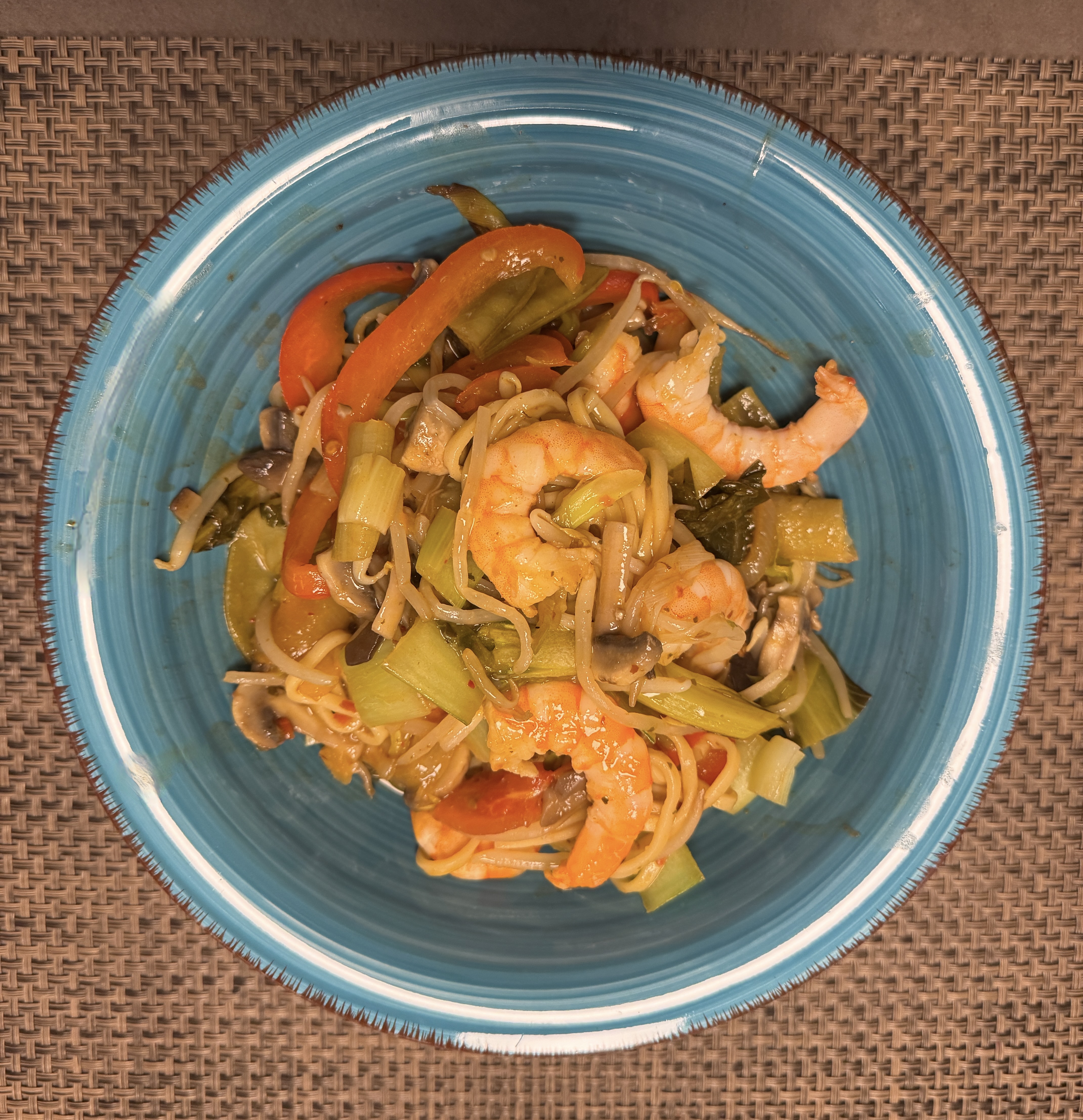 Cooking has been simple and satisfying. I made a delicious tomato soup using tomatoes from last year’s harvest — pulp that had been cooked and frozen. A small bowl is incredibly satiating. We’ve also had salads, prawn stir-fry, sticky beef stir-fry, and steak with mushrooms and onions.